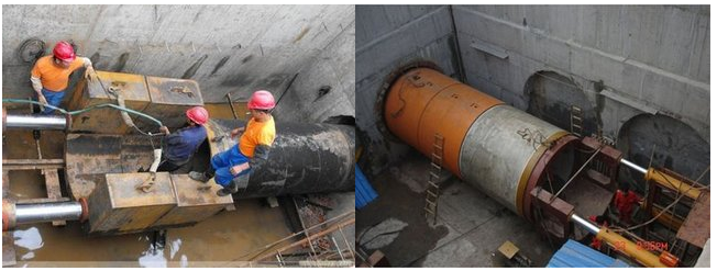 頂管施工就是非開挖施工方法,是一種不開挖或者少開挖的管道埋設(shè)施工技術(shù)。頂管法施工就是在工作坑內(nèi)借助于頂進(jìn)設(shè)備產(chǎn)生的頂力,克服管道與周圍土壤的摩擦力,將管道按設(shè)計的坡度頂入土中,并將土方運走。一節(jié)管子完成頂入土層之后,再下第二節(jié)管子繼續(xù)頂進(jìn)。其原理是借助于主頂油缸及管道間、中繼間等推力,把工具管或掘進(jìn)機(jī)從工作坑內(nèi)穿過土層一直推進(jìn)到接收坑內(nèi)吊起。管道緊隨工具管或掘進(jìn)機(jī)后,埋設(shè)在兩坑之間。