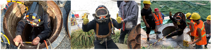工程潛水人員,在水下的工作過程中,他們需要對彼此的情況的充分了解,才能在水下相互的默契配合,一個手勢一個眼神就能了解對方的意圖,共同完成水下的任務,為工程的順利完成準備良好的條件。水下打撈隊是一個團隊,需要彼此之間的相互配合,這對水下打撈任務的完成非常的重要。打撈隊潛水員、信繩員、電話員、生命支持員膠管員(扯管員)必須由正式潛水作業(yè)人員操作,嚴禁他人代替。潛水作業(yè)前應了解作業(yè)現(xiàn)場的水深、流速、水溫、水質(zhì)、水文、底質(zhì)及風速,并認真填寫在潛水日志中。根據(jù)水下作業(yè)內(nèi)容和工作量,結(jié)合作業(yè)現(xiàn)場水文、氣象、地質(zhì)情況,認真分析潛水作業(yè)中可能遇到的各種情況,制定潛水作業(yè)方案和應急保障措施。